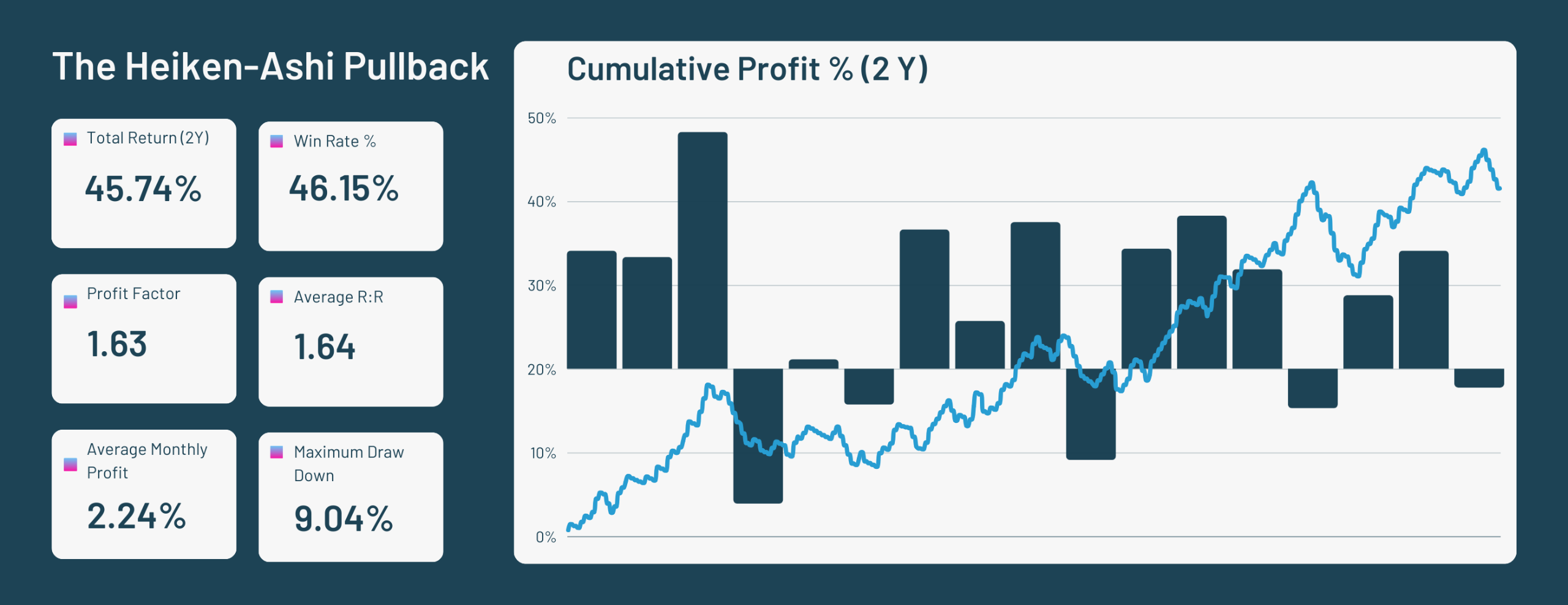 These are our model results for the past 2 years using the Heiken-Ashi Trend Strategy. âïž