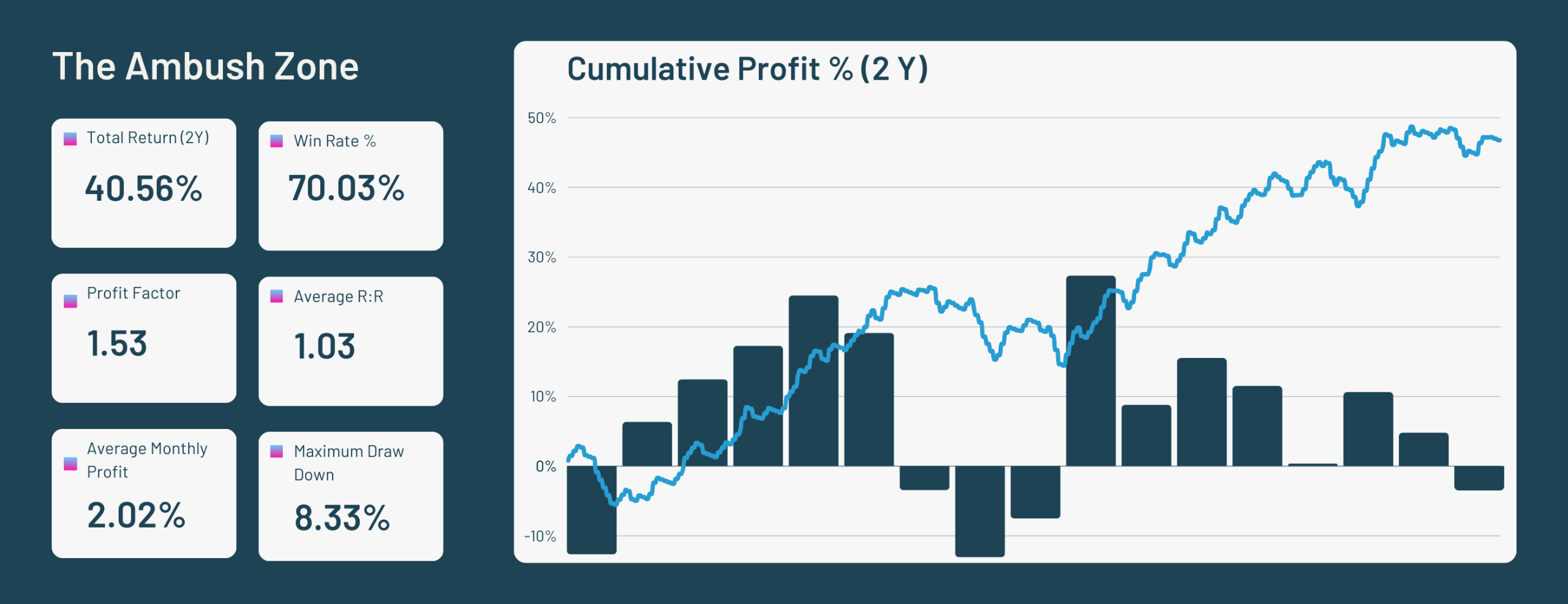 These are our model results for the past 2 years using the Ambush Zone Reversion Strategy. âïž